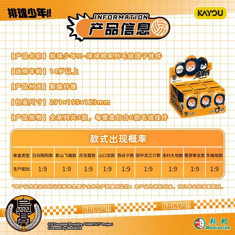 【予約】ハイキュー!! 中国限定 KAYOUコラボ 団子マスコット ブラインド・BOX(入金〆切3日以内) [HK 251002-ON]